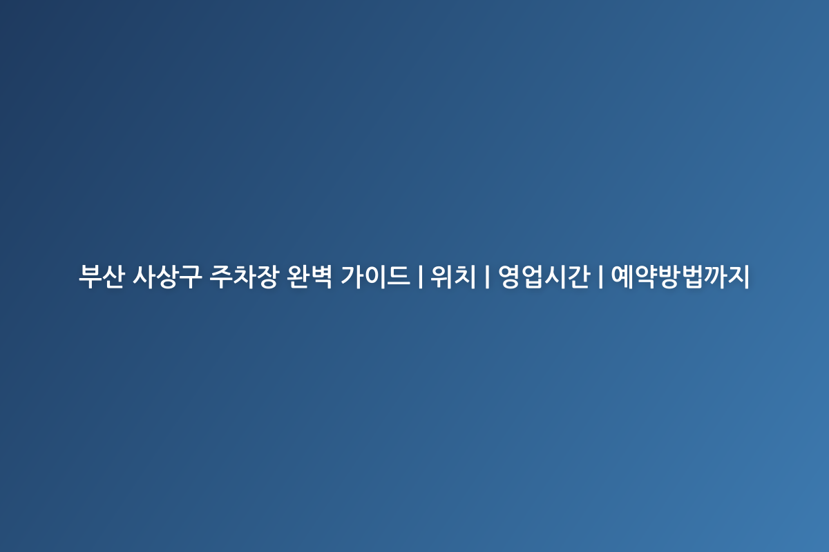 부산 사상구 주차장 완벽 가이드 | 위치 | 영업시간 | 예약방법까지
