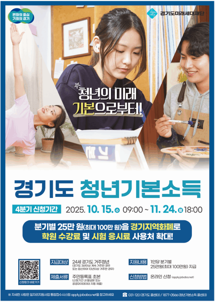 2025년에도 청년 기본소득은 경기도 청년을 위한 든든한 지원책으로 계속된다. 지금 만 24세라면, 꼭 자격을 확인하고 분기별 신청 기간을 캘린더에 기록해 두자.