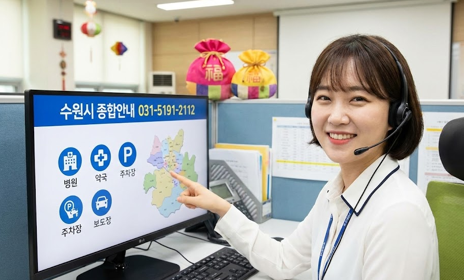 가족들과 즐거운 시간을 보내야 하는 설 명절에 갑자기 궁금한 점이 생기면 당황스럽기 마련입니다. 연휴 기간 중 운영하는 병원이나 약국 정보부터 주차장 개방 현황까지 한 번에 확인할 수 있는 곳이 바로 수원시 종합안내 센터예요.