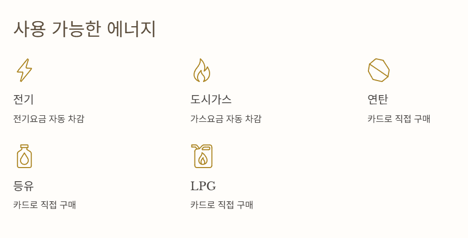 - 연탄, 등유, LPG 등 직접 구입 시 사용